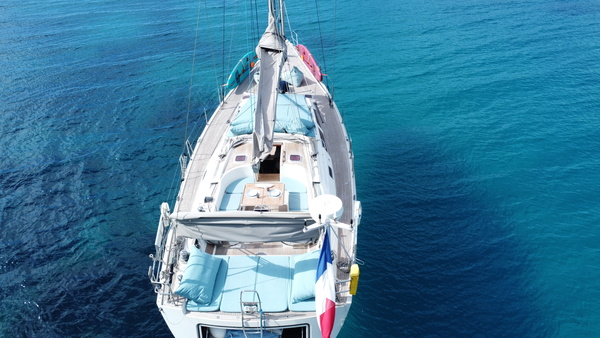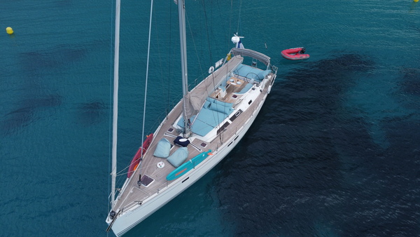 Sus 16,08 metros de eslora y 4,91 metros de manga ofrecen todo el confort que esperas. Capacidad para 12 personas, ámplios espacios interiores y exteriores, un salón luminoso con un sofá convertible en cama doble, 3 camarotes dobles con baño privado completo (WC y ducha), cocina equipada, 3 neveras, congelador y máquina de hielo. En la cubierta podrás disfrutar de solárium tanto en Proa como en popa, así como de la zona de pufs ubicada en proa.